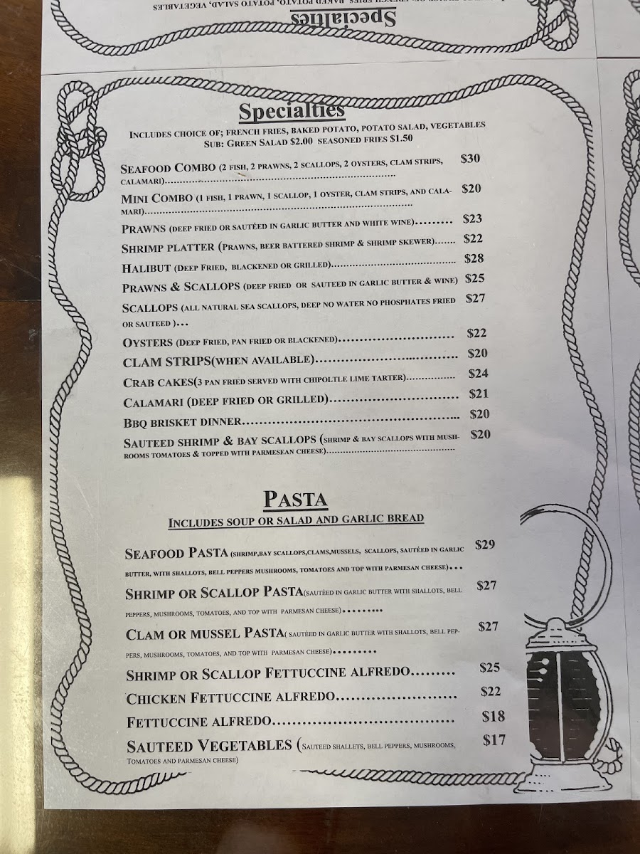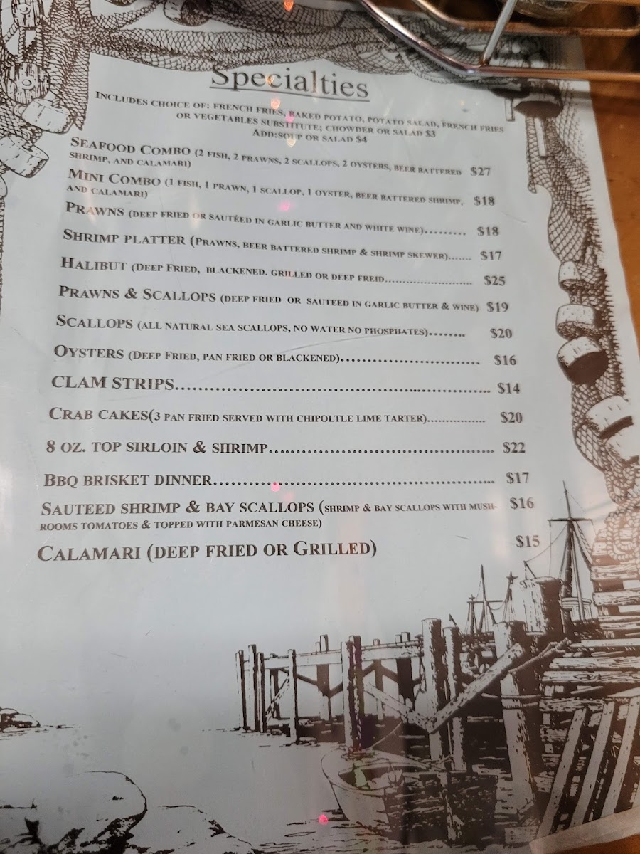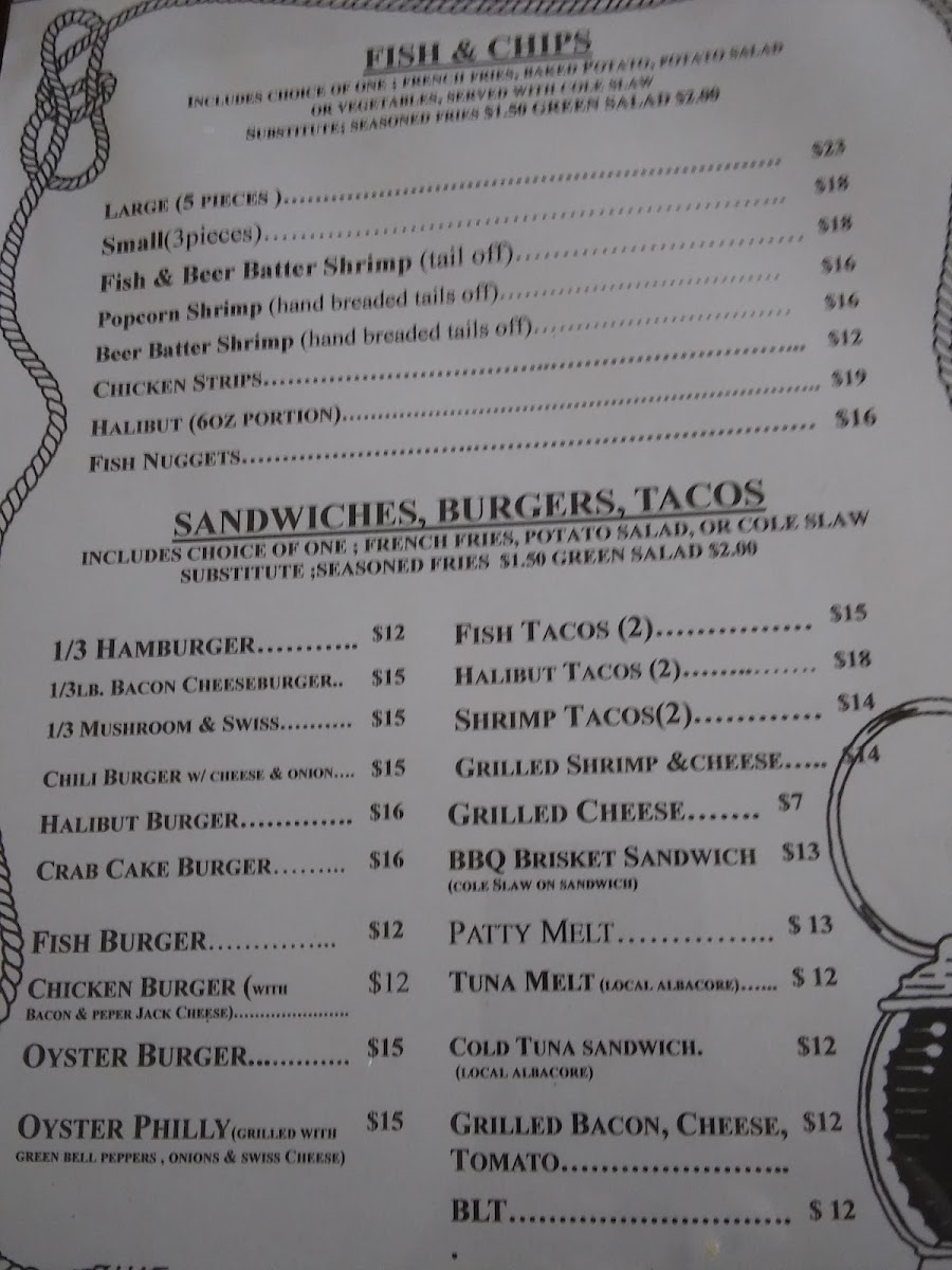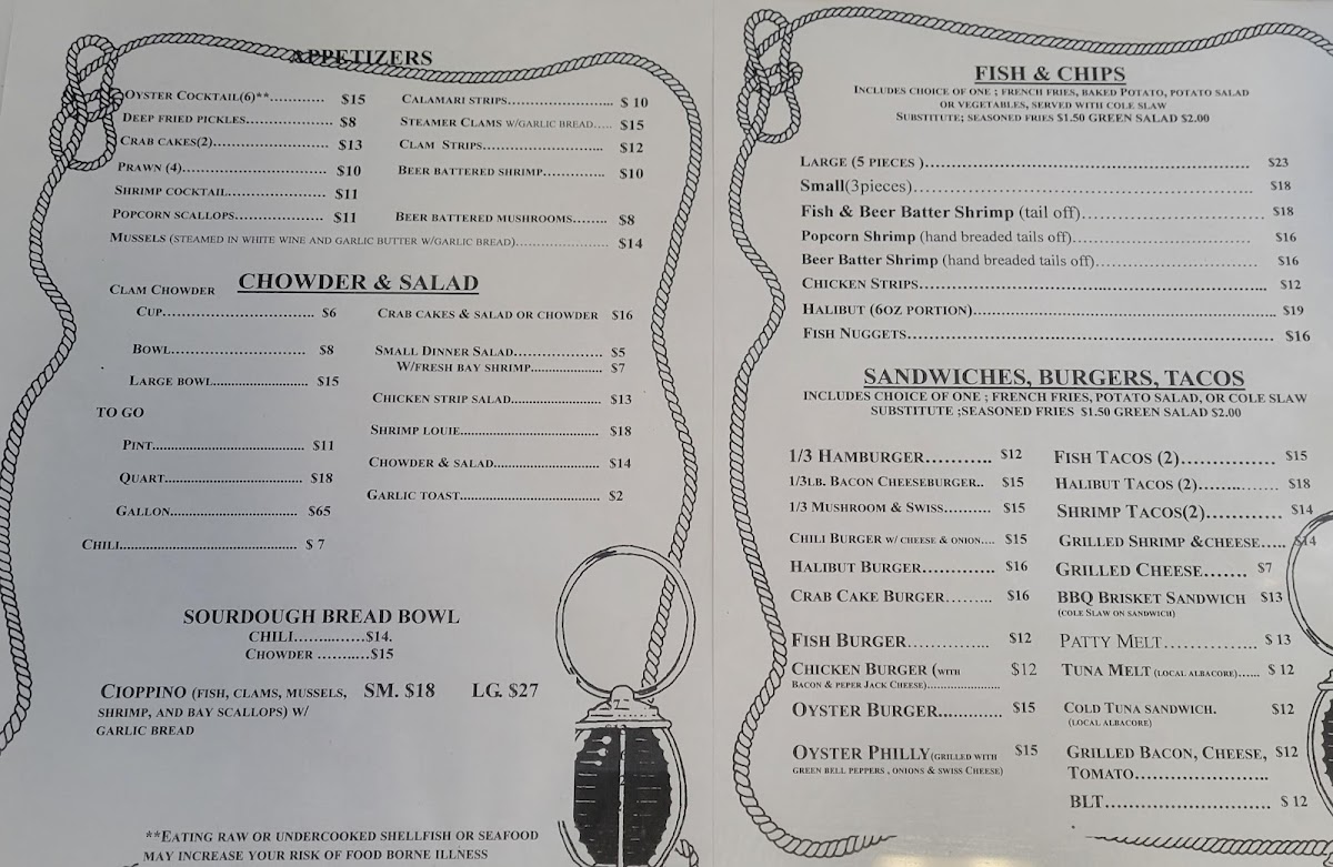 You’ll find options like a hearty cioppino, crispy clam strips, and fresh shrimp baskets that fit naturally with a welcoming atmosphere. Light meals such as shrimp tacos or clam chowder in a bread bowl are popular choices for lunch or a casual dinner, while the seafood pasta dishes offer a satisfying, homestyle flavor for those looking for something a little more substantial.