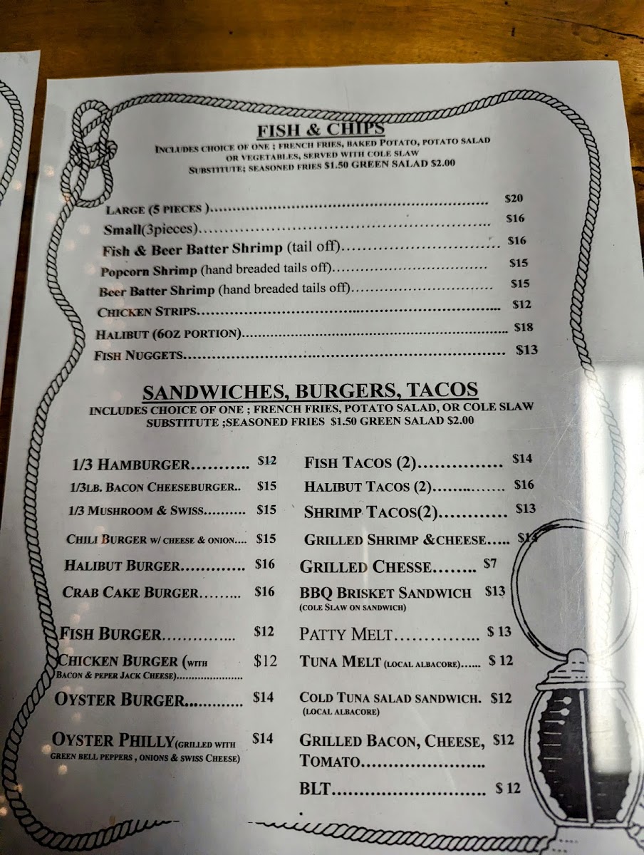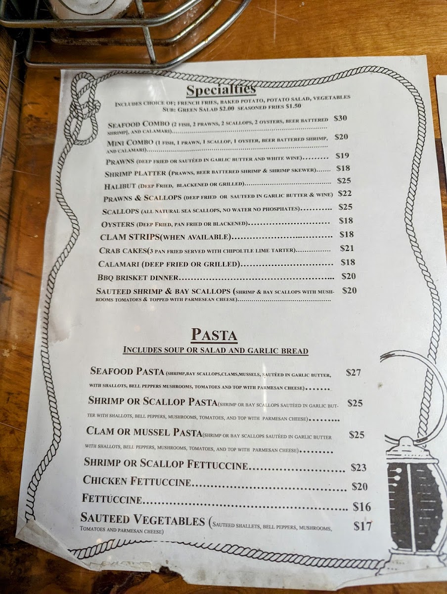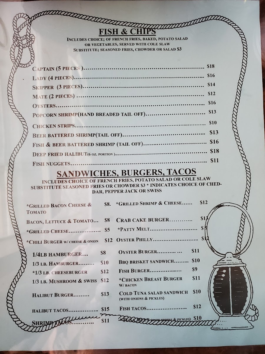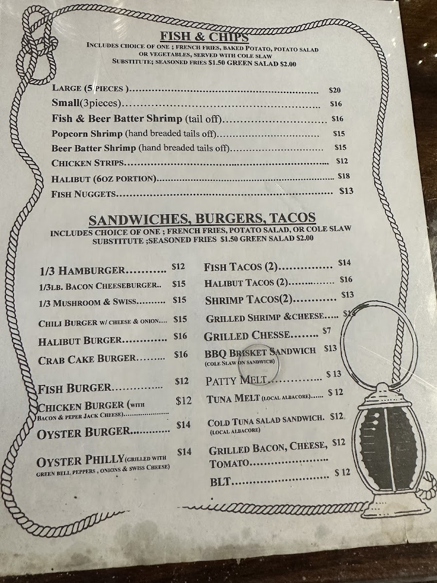 You’ll find options like a hearty cioppino, crispy clam strips, and fresh shrimp baskets that fit naturally with a welcoming atmosphere. Light meals such as shrimp tacos or clam chowder in a bread bowl are popular choices for lunch or a casual dinner, while the seafood pasta dishes offer a satisfying, homestyle flavor for those looking for something a little more substantial.
